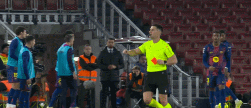 第66分钟,巴萨门将教练德拉富恩特吃到红牌,镜头未交代发生了什么